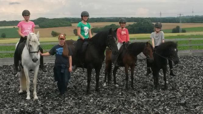 Die Kleingruppe, egal ob Anfänger oder Fortgeschrittene, ob Pony oder Großpferd besteht aus maximal 3-4 Reitern mit Pony / Pferd. Auch eine "Hausfrauen"-Stunde darf natürlich nicht fehlen.