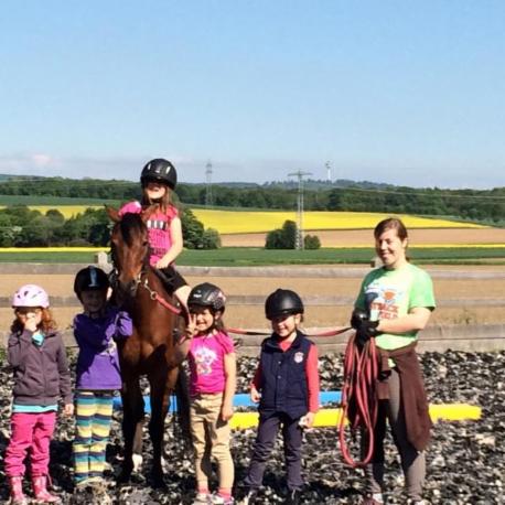 Die Kleingruppe, egal ob Anfänger oder Fortgeschrittene, ob Pony oder Großpferd besteht aus maximal 3-4 Reitern mit Pony / Pferd. Auch eine "Hausfrauen"-Stunde darf natürlich nicht fehlen.